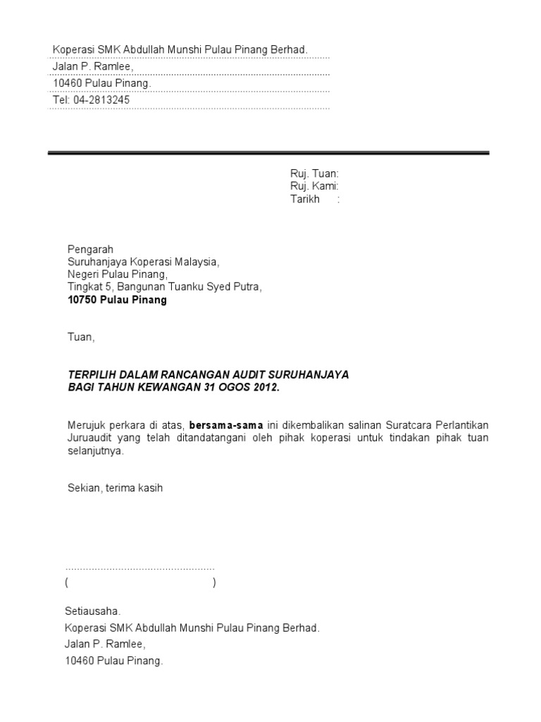 Contoh Surat Tugas Internal Audit Contoh Surat Terbaik. 20 contoh surat jawapan teguran audit kumpulan contoh surat.